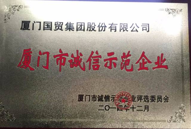 由廈門(mén)市誠信促進(jìn)會(huì )及相關(guān)職能部門(mén)聯(lián)合開(kāi)展的“2012—2013年度廈門(mén)市誠信示范企業(yè)”評選結果日前出爐,今天,廈門(mén)國貿與其它摘得金牌的316家標桿企業(yè)一起接受了表彰。