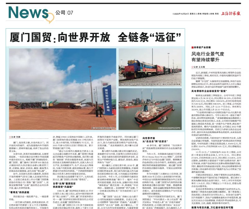 上海證券報 | 廈門(mén)國貿:向世界開(kāi)放 全鏈條“遠征”