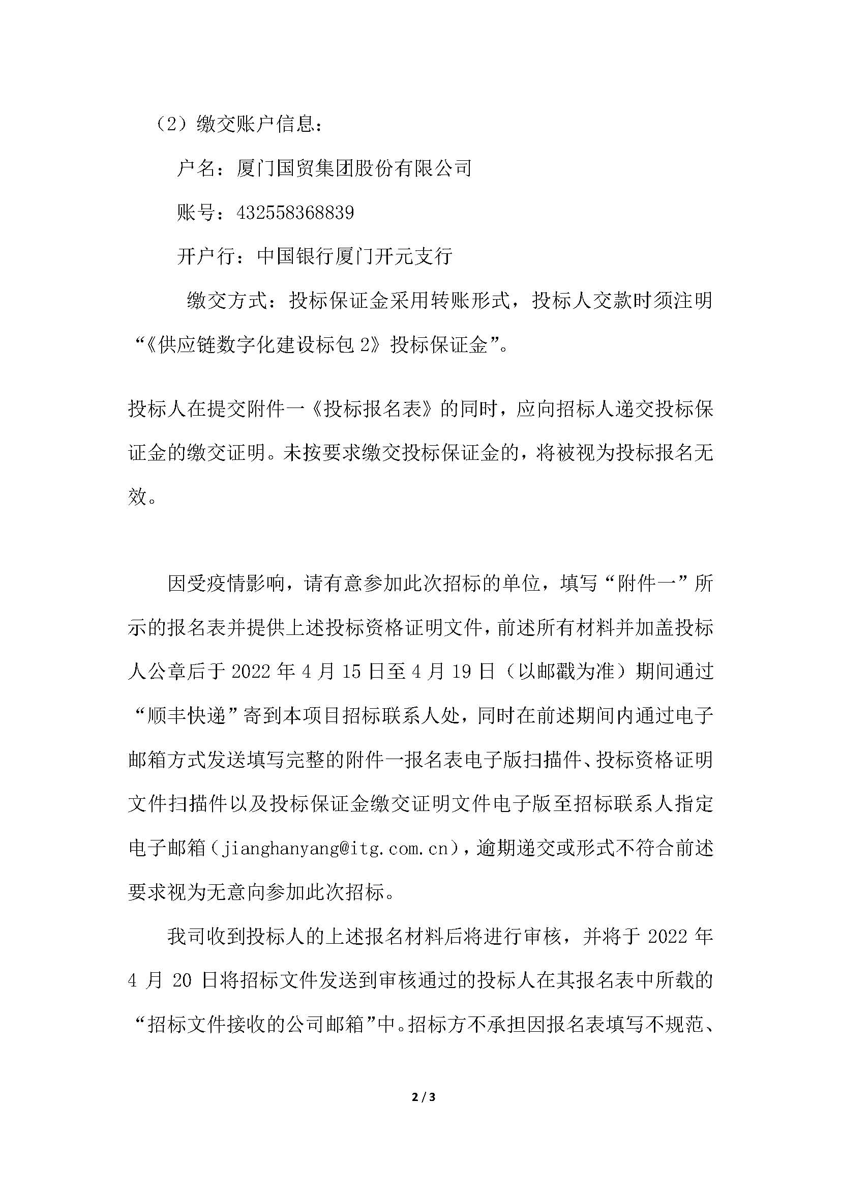 廈門(mén)國貿數字科技有限公司關(guān)于《供應鏈數字化建設標包2》的招標公告